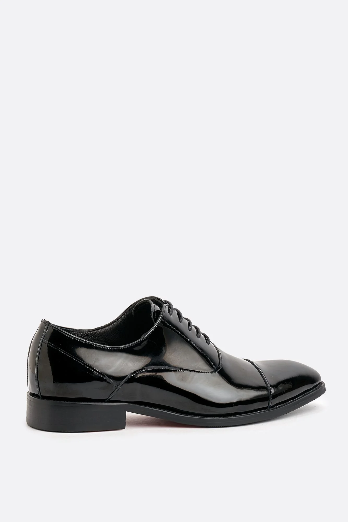 The sleek black finish and classic lace-up silhouette offer a polished, versatile aesthetic, making them the perfect companion for tailored suits and formal ensembles. Designed for both style and comfort, they deliver a confident stride and an elevated presence from day to night.