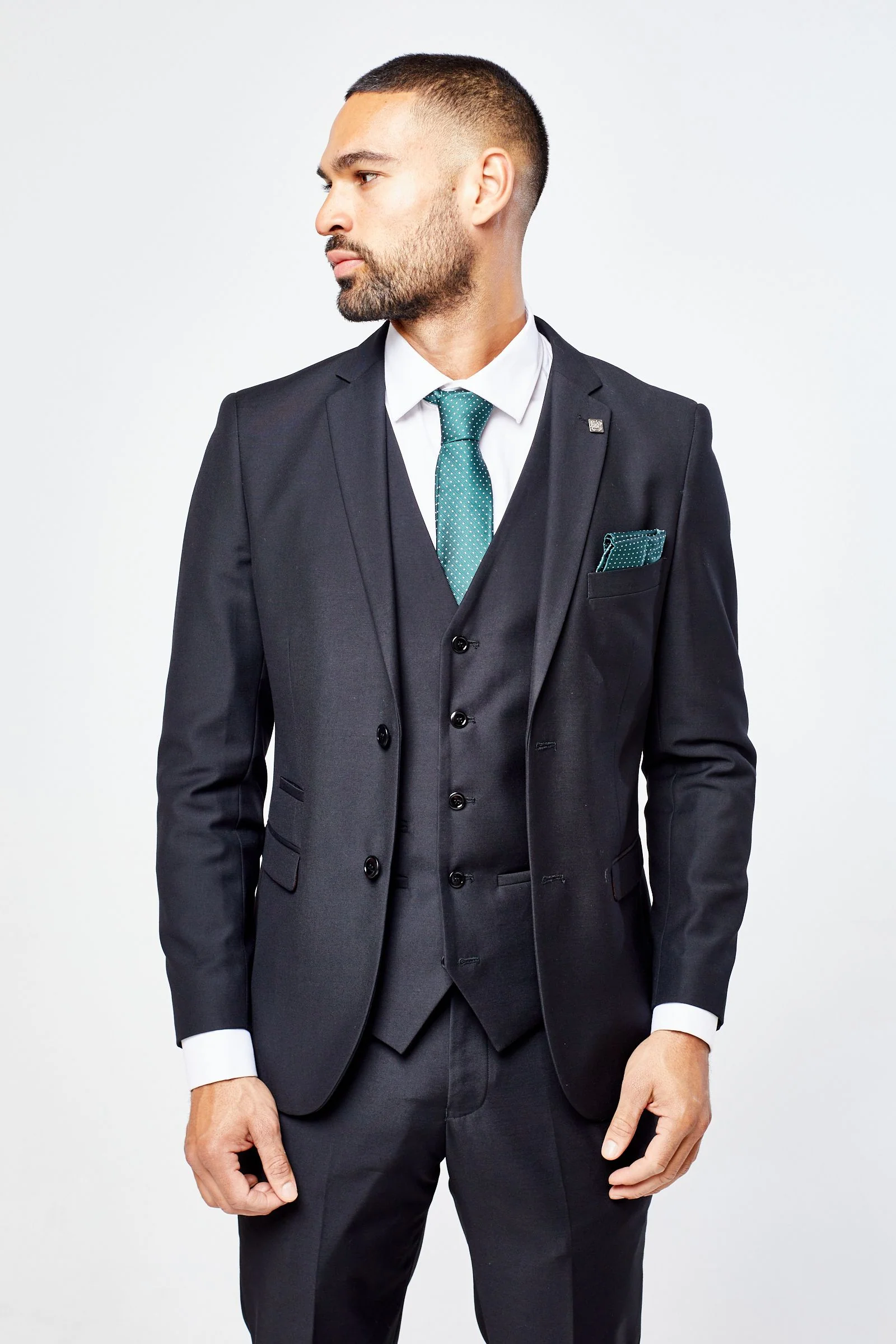 A versatile black suit by Paul Andrew, essential for any wardrobe. Meticulously designed to bring you both comfort and style to get you through even the most punishing days.
